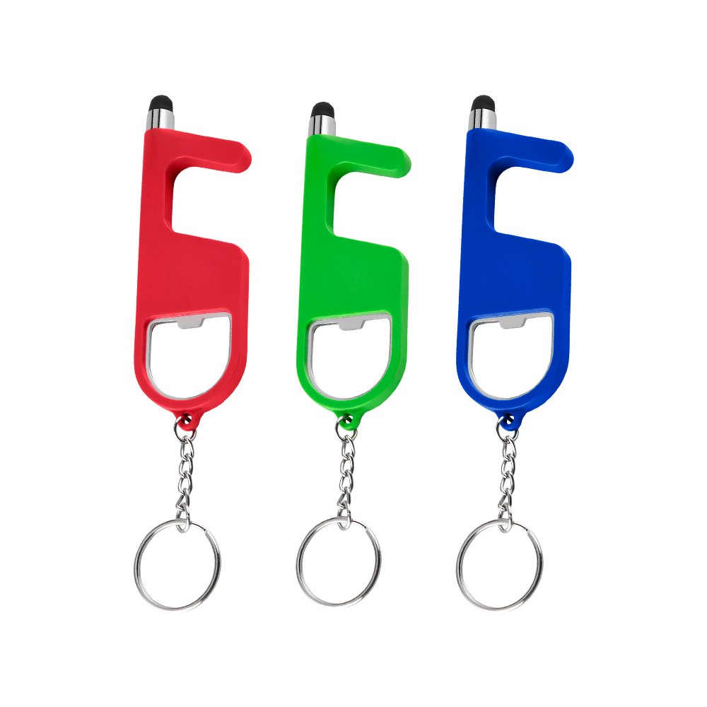 Chaveiro de plástico, material antibacteriano, com as funções: