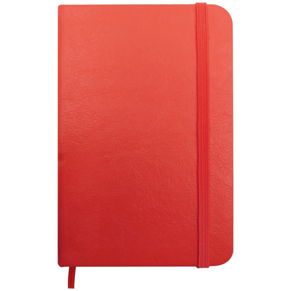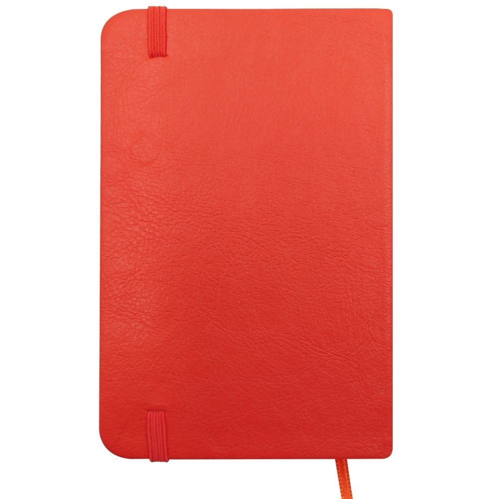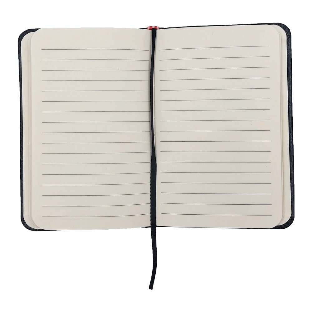 Bloco de anotações capa dura em couro sintético personalizado, com elástico para fechamento, 80 folhas amarelas com pauta, marca página de cetim da cor do bloco, caneta cilíndrica em metal com acabamento prata cromado na parte superior e parte inferior com acabamento xadrez texturizado, com carga da cor azul e com acionamento giratório